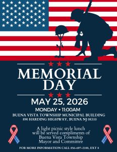 Please bring your donations to the Buena Vista Township Municipal Building, located at 890 Harding Highway anytime during regular working hours (Monday through Friday, 8:30 am to 4:30 pm, except Holidays).